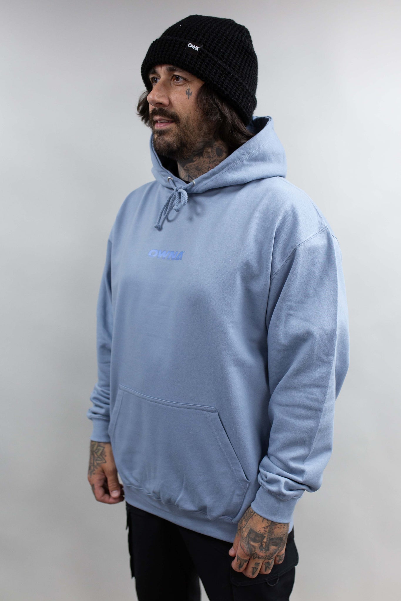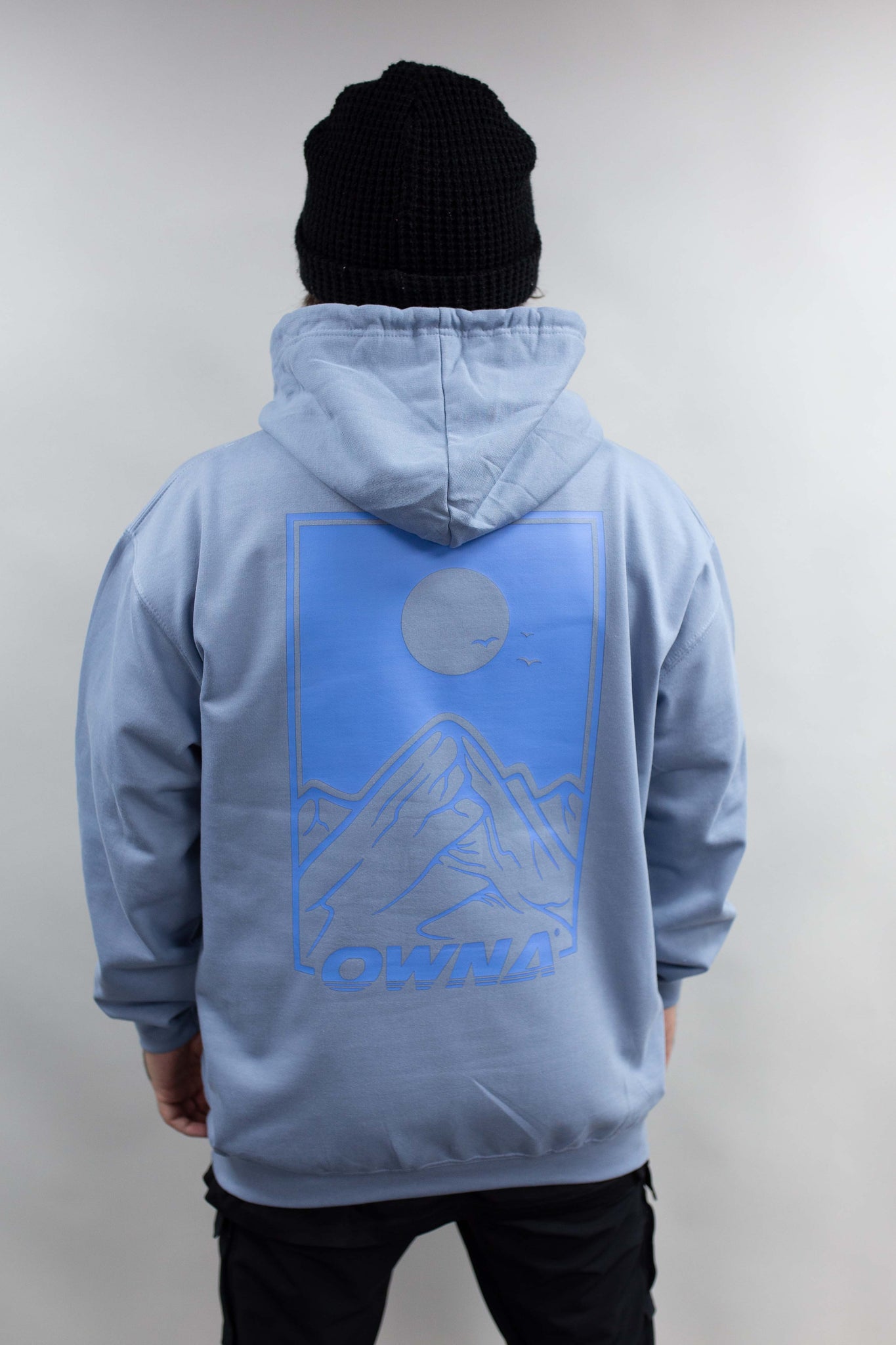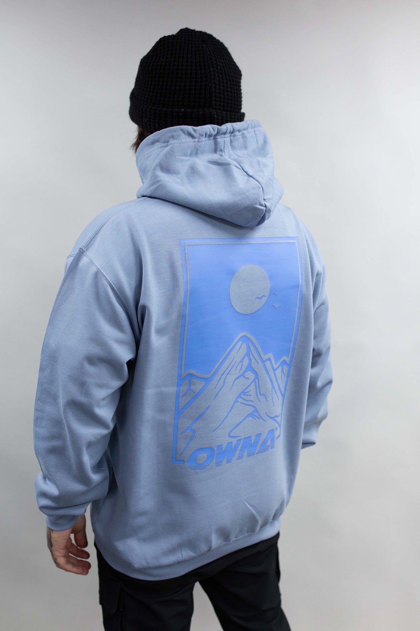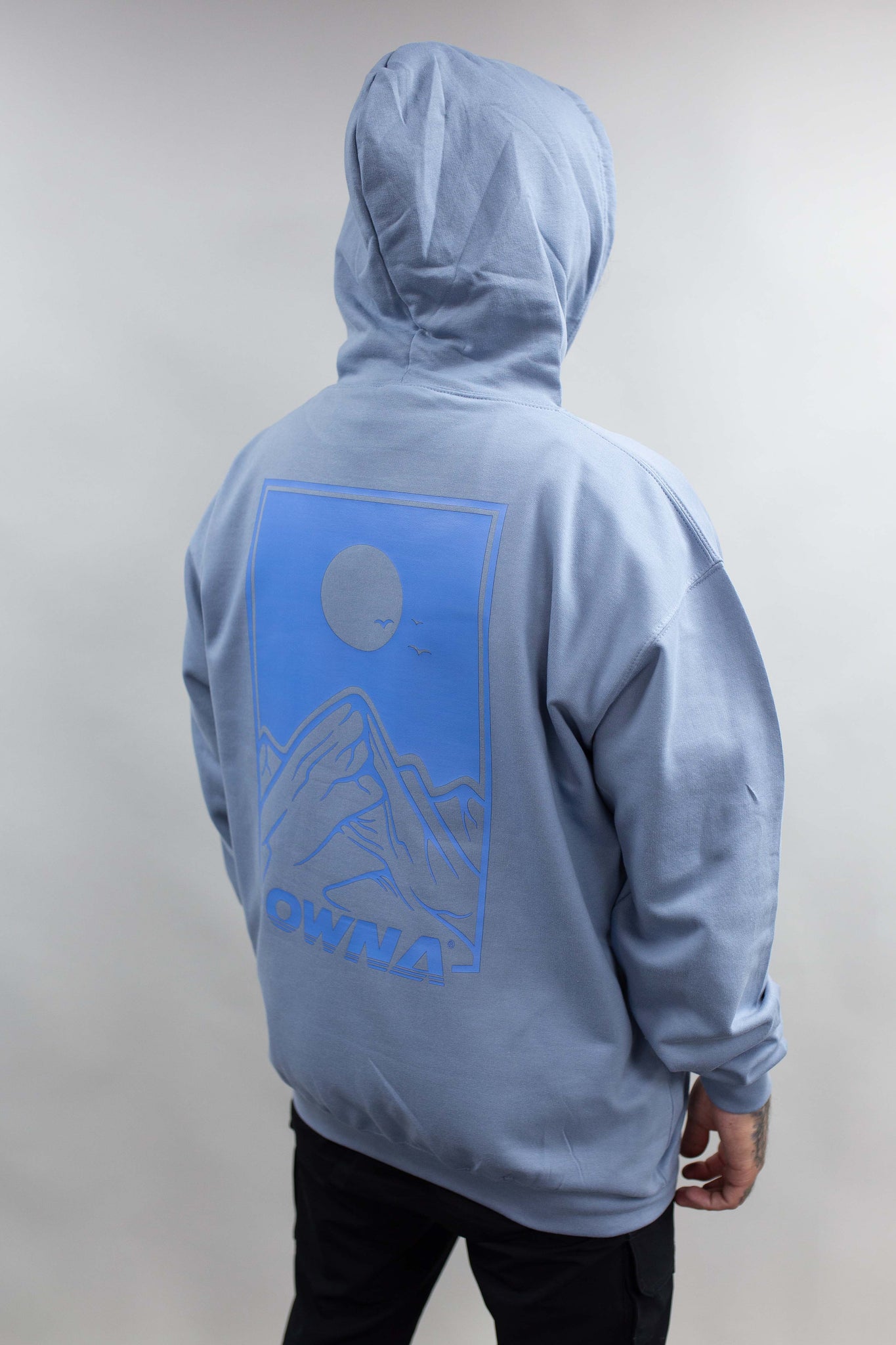 ' MOUNTAINS ' BACK PRINT B1 BLUE FADE / VIBE BLUE MOUNTAIN LOGO HOODIE!
