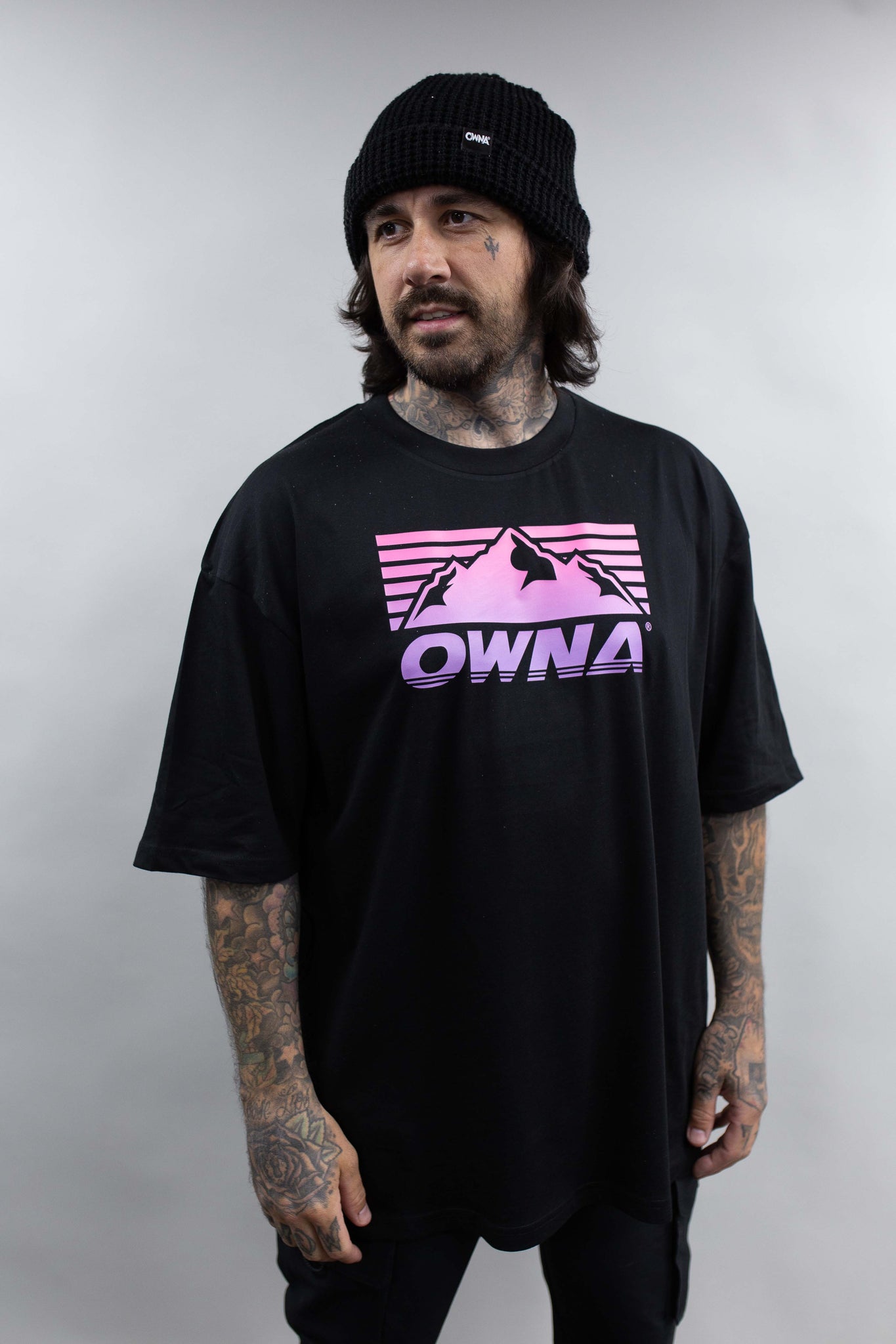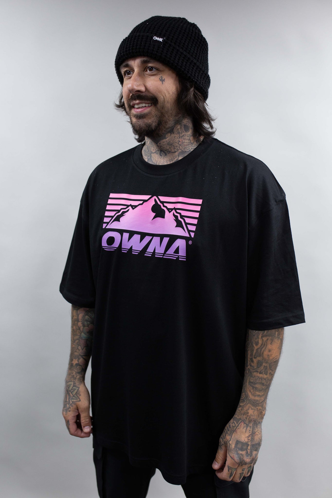 Limited edition ' NATIONAL ' BLACK T-SHIRT PINK FADE LOGO!